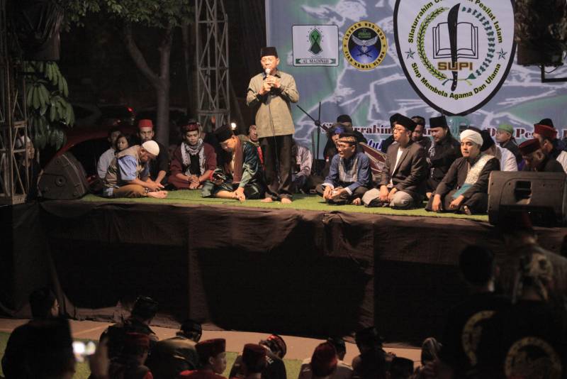Ratusan pelaku seni bela diri pencak silat dan para ulama memadati pelataran masjid Al - Madinah komplek CBD Ciledug guna menghadiri acara silaturahmi ulama dan pesilat Islam.