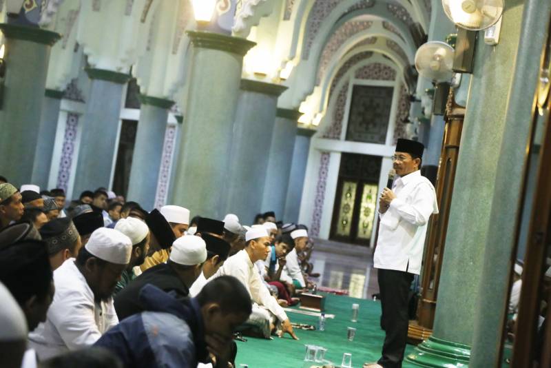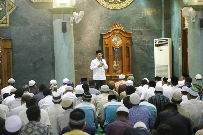 Wakil Wali Kota Tangerang, H. Sachrudin, memberikan Kuliah Tujuh Menit (Kultum) pada Salat Tarawih di Masjid Raya Al-A'zhom, Selasa (07/06).