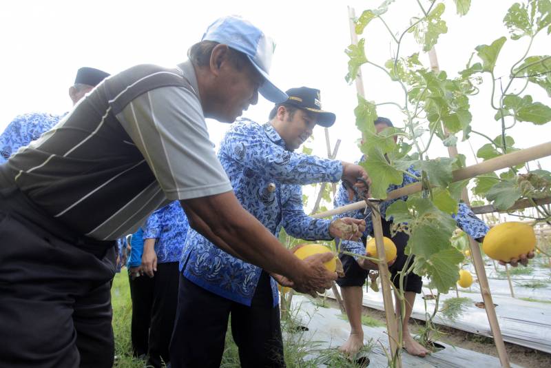 “Kalau perlu buat posko pendidikan bertani sederhana buat anak-anak biar bisa ikut belajar dan bertani saat waktu luangnya dan buat taman berkebun, biar masyarakat semakin semangat bercocok tanamnya,” ujarnya, yang juga turut memetik melon bersama Kepala Dinas Ketahanan Pangan, Tabrani, serta para warga.