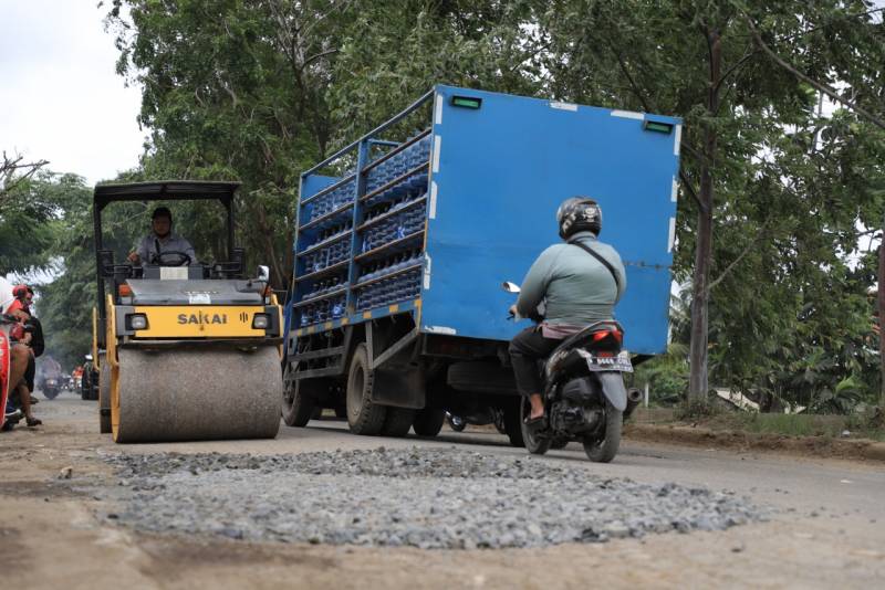 Sandi menambahkan, saat ini PUPR tengah melakukan perbaikan sementara. Menurunkan hampir 100 petugas, untuk melakukan operasional dan pemeliharaan jalan rusak, yang sifatnya penanganan sementara. “Perbaikan sementara ini sifatnya sementara, sambil menunggu proses lelang yang wajib kita lalui. Terpenting, dengan perbaikan sementara ini, dapat mengurangi risiko jalan rusak, dan tentunya beri kenyamanan saat berkendara,” papar Shandy.