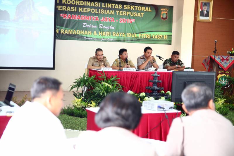 Wakil Wali Kota Tangerang, Sachrudin, Senin (27/06), menghadiri Rapat Koordinasi Pelaksanaan Pengamanan Operasi Ramadniya-Jaya 2016 di Ruang Rapat Kantor Kepolisian Resort Metro Tangerang.