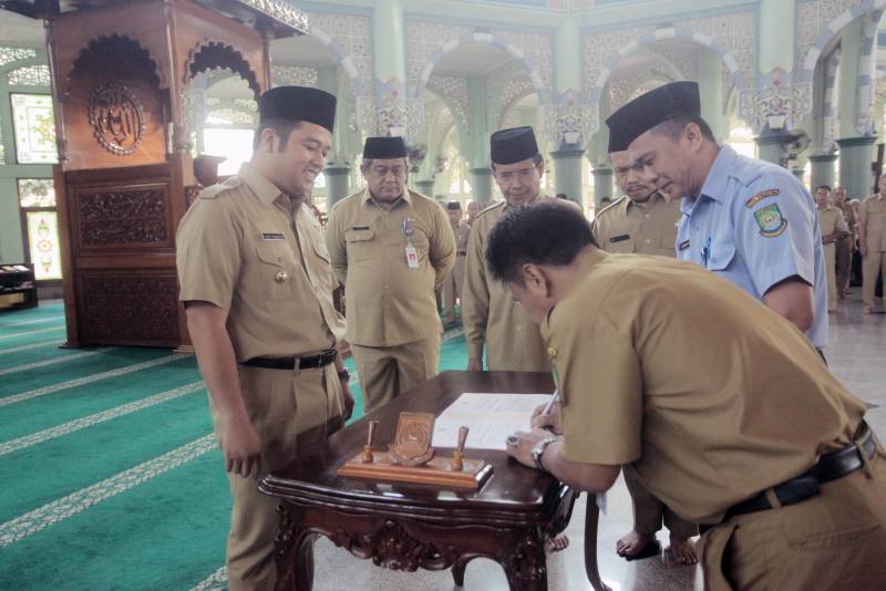 Dalam sambutannya, Wali Kota Tangerang Arief Rachadiono Wismansyah yang didampingi oleh Wakil Wali Kota, Sachrudin dan Sekretaris Daerah, Dadi Budaeri saat melantik sebanyak 121 kepala sekolah dan pengawas sekolah negeri di Kota Tangerang, di Masjid Raya Al-Azhom, Senin (12/06), berharap, agar para kepala dan pengawas sekolah yang dilantik dapat senantiasa bersama - sama meningkatkan kualitas pendidikan, tidak hanya dari segi nilai dan prestasi namun juga membangun akhlak peserta didik