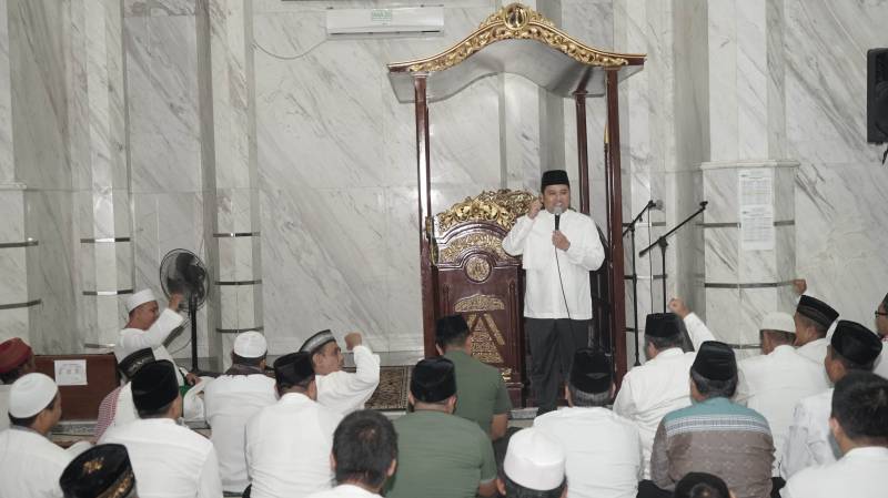"Bulan Ramadhan harus bisa jadi momentum untuk kita buat nambah iman dan taqwa." Ujar Wali Kota ketika memberi sambutan pada acara shalat taraweh di Masjid Raya Ar Royan, Cibodas, Jumat (26/5).