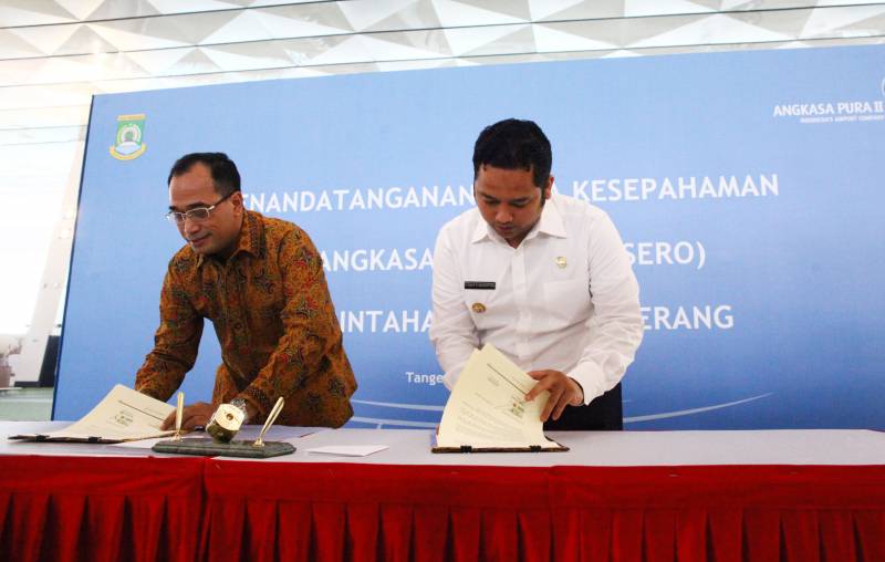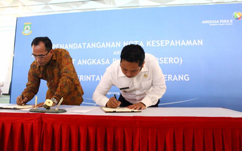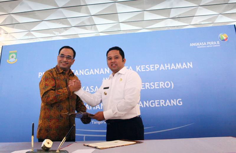 Pemerintah Kota (Pemkot) Tangerang dan Perseroan Terbatas Angkasa Pura II (PT. AP II), melakukan Penandatanganan Nota Kesepahaman atau Memorandum of Understanding (MoU) terkait penyaluran dan penyediaan air bersih untuk Bandara Soekarno-Hatta (Soetta), Kota Tangerang.