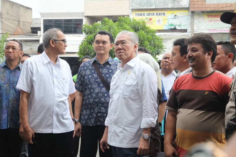 Kedatangan Mendag yang turut didampingi oleh Direktur Jenderal Perdagangan Dalam Negeri, Oke Nurwan beserta para wartawan, menuju Pasar Anyar pada Minggu (07/08), untuk mengecek harga sejumlah bahan pangan seperti daging, beras, bawang, sayuran.