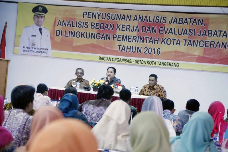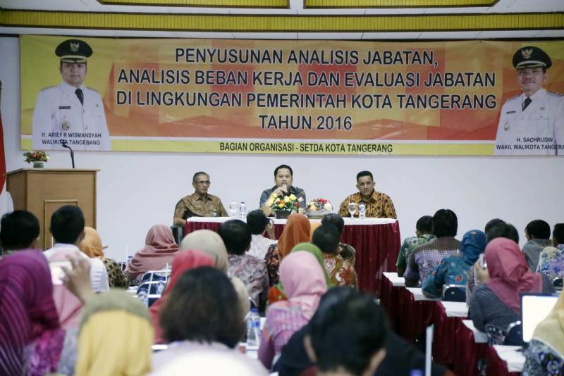 Hal tersebut disampaikan Wali Kota Tangerang, Arief R. Wismansyah, dihadapan 133 peserta Bimbingan Teknis Penyusunan Analisis Beban Kerja di Lingkungan Pemerintah Kota Tangerang yang dilaksanakan oleh Bagian Organisasi di Hotel Primkokarmar, Cipayung, Bogor, Kamis (11/08).