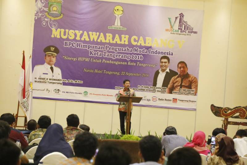 Wakil Wali Kota Tangerang, Sachrudin, Kamis (22/09), membuka Musyawarah Cabang (Muscab) V Himpunan Pengusaha Muda Indonesia (HIPMI) Kota Tangerang di Hotel Narita Cipondoh.