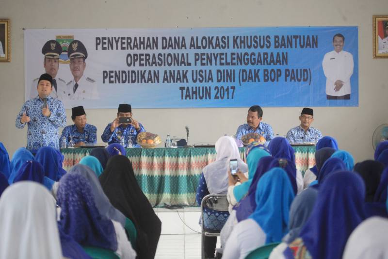 Tak terkecuali dengan Pendidikan Anak Usia Dini (PAUD) di Kota Tangerang, Pemkot melalui Dinas Pendidikan Kota Tangerang hari ini menyelenggarakan kegiatan Penyerahan Dana Alokasi Khusus Bantuan Operasional Penyelenggaraan Pendidikan Anak Usia Dini ( DAK BOP PUD) tahun 2017.