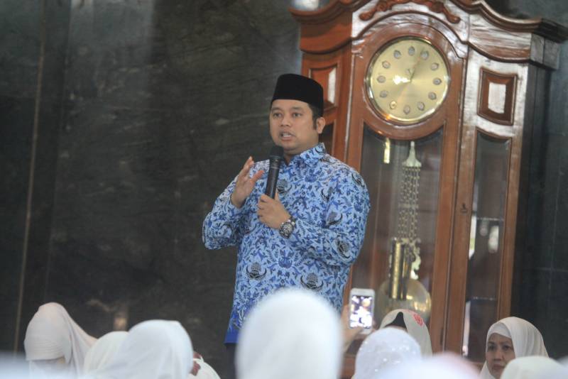 "Nanti di tanggal 24 Mei , Pemkot undang bapak ibu sekalian untuk sama - sama sambut bulan Ramadhan" ucap Wali Kota ketika memberi sambutan pada acara Pengajian Bulanan dan Khataman Al Quran di Masjid Raya Al Azhom, Rabu (17/5).