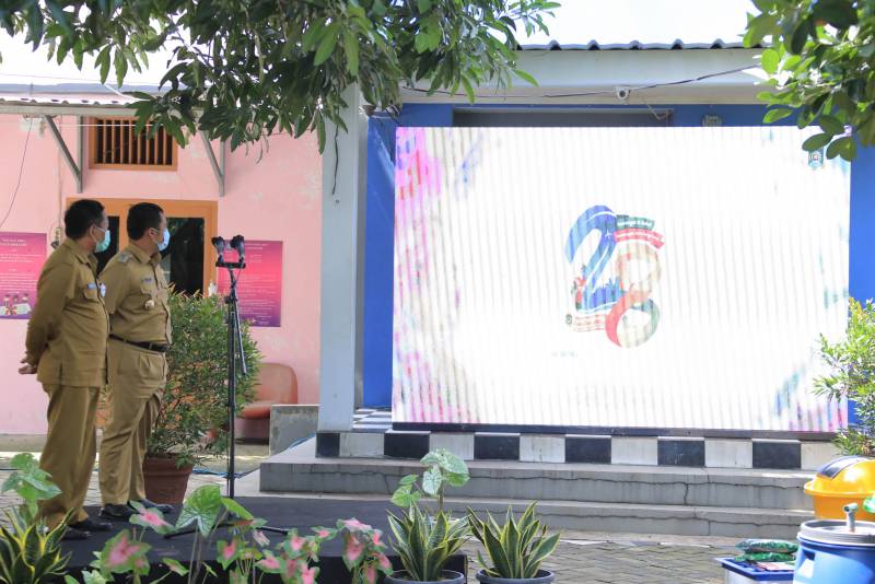 Wali Kota Tangerang, Arief R. Wismansyah hadir didampingi oleh Sekretaris Daerah Kota Tangerang Herman Suwarman memberikan secara simbolis sejumlah sarana dan prasarana dan juga sekaligus melaunching Logo HUT Kota Tangerang yang ke-28.