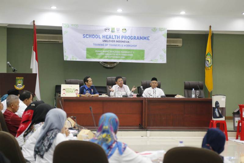 Hal tersebut disampaikannya saat membuka kegiatan Training of Trainers (ToT) dan Workshop Program Sekolah Sehat yang digagas PT. Unilever Indonesia, Bina Masyarakat Peduli (BMP)bersama Bagian Kesejahteraan Masyarakat Sekretariat Kota Tangerang di Ruang Akhlakul Karimah, Pusat Pemerintah Kota Tangerang, Jum'at (30/09).