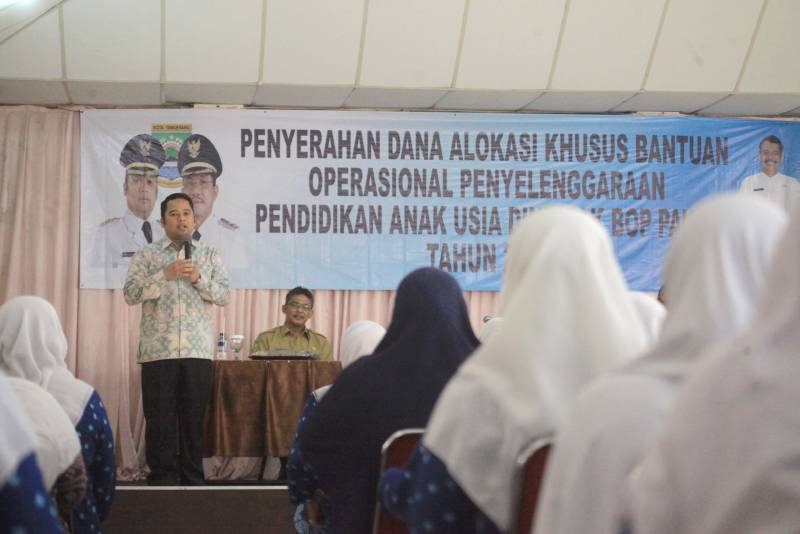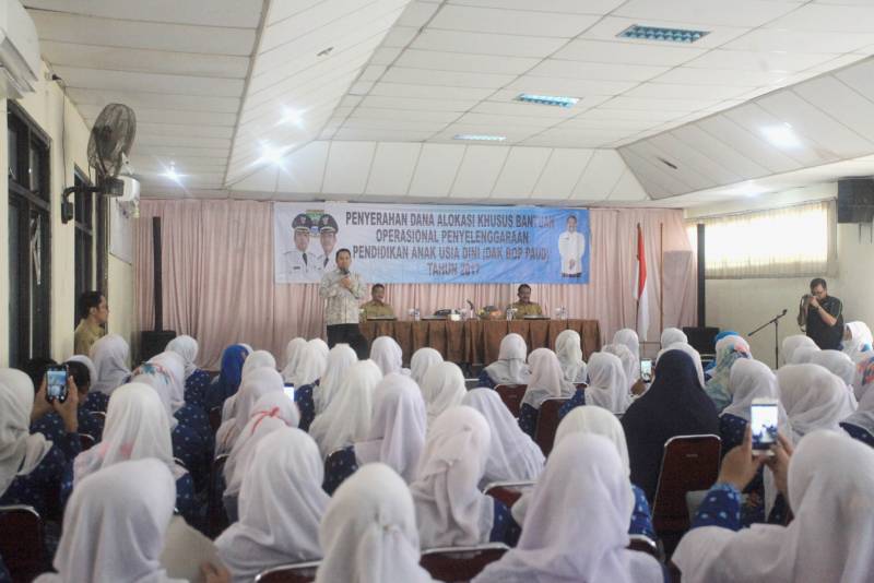 Ia menyebutkan, berdasarkan Data Pokok Pendidikan (DAPODIK) PAUD Pendidikan Masyarakat (DIKMAS), bantuan diberikan kepada 326 lembaga PAUD (Taman Kanak-Kanak) dan 274 (Kelompok Bermain), yang tersebar di 13 kecamatan. Dengan total keseluruhan DAK Non fisik sebesar Rp.16.886.400.000,-