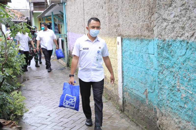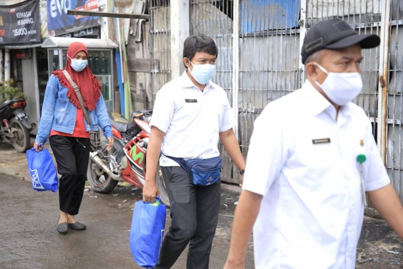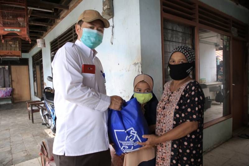 Selain itu, di wilayah lain, yaitu Kecamatan Periuk, jajaran Dinas Perindagkop-UKM dan RSUD membagikan sembako dengan total 387 paket, yang disebar di lima kelurahan.