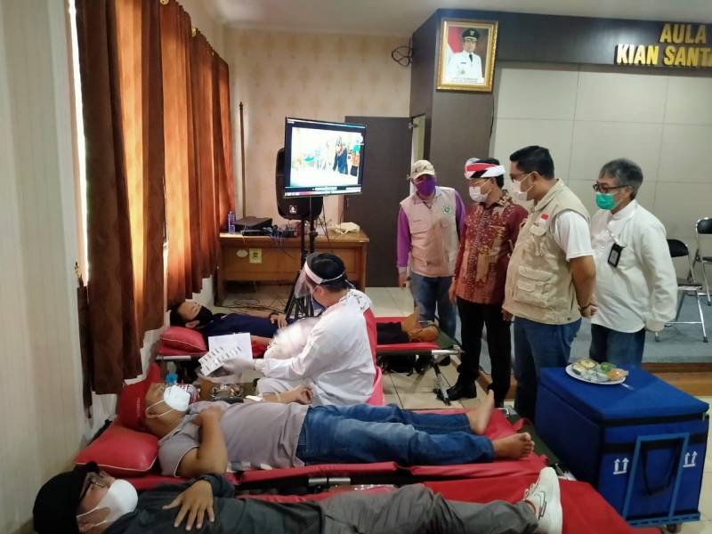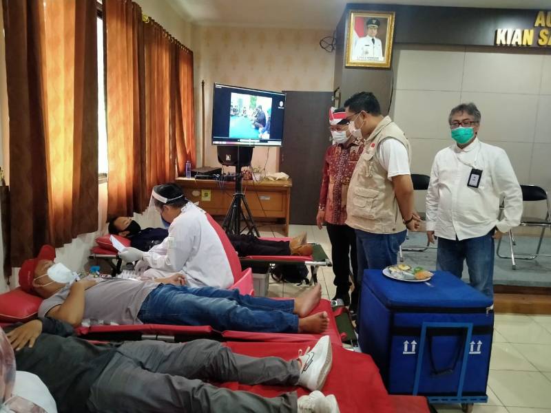 Seiring mewabahnya pandemi Covid-19 yang mengakibatkan stok darah di PMI Kota Tangerang berkurang, para Pemuda Karang Taruna Sangiang Jaya bersama PMI menggelar kegiatan donor darah di Kantor Aula Kelurahan Sangiang Jaya, Kecamatan Periuk, Kota Tangerang, Minggu (31/01/2021).