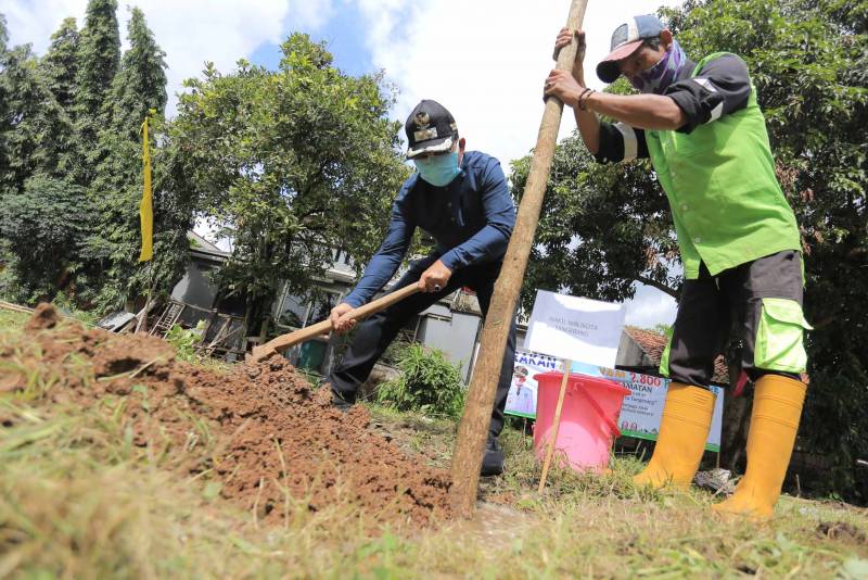 Wali Kota Tangerang, H. Arief R. Wismansyah bersama wakilnya H. Sachrudin dan Sekretaris Daerah Kota Tangerang Herman Suwarman melakukan penanaman pohon secara simbolis pada lahan fasos fasum di Perumahan Cipondoh Makmur, RW 04, Kecamatan Cipondoh, Kota Tangerang pada Jumat (5/2).