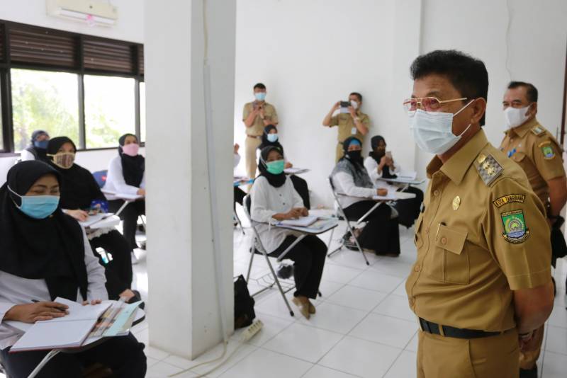 Wakil Wali Kota Tangerang, H. Sachrudin didampingi Kepala Dinas Ketenagakerjaan Kota Tangerang Rahmansyah serta Camat Larangan Marwan secara resmi membuka kegiatan yang berlangsung secara virtual bertempat di Balai Latihan Kerja Kecamatan Larangan, Selasa (16/2/2021).