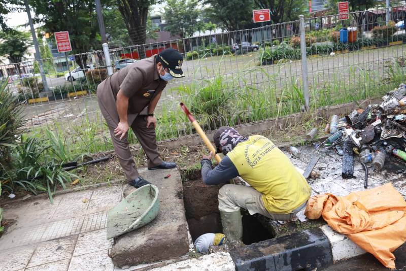 Sebagai langkah antisipasi, Wali Kota Tangerang H. Arief R. Wismansyah didampingi Kepala Dinas Pekerjaan Umum dan Penataan Ruang (DPUPR) Kota Tangerang Decky Priambodo serta jajaran Dinas Lingkungan Hidup Kota Tangerang meninjau langsung sejumlah saluran di titik lokasi yang kerap terjadi genangan air.