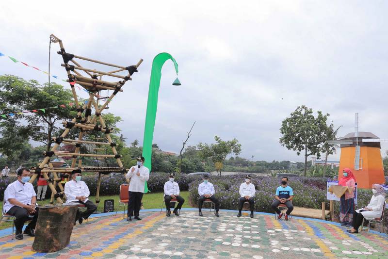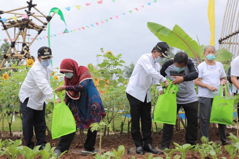 Wali Kota Tangerang H. Arief R. Wismansyah bersama Wakil Wali Kota Tangerang H. Sachrudin dan Sekretaris Daerah Kota Tangerang Herman Suwarman hadir dalam acara peresmian Ecofarm Kampung Baru dan Launching Asuransi Pohon Tumbang yang bertempat di Kelurahan Koang Jaya, Kecamatan Karawaci, Jum'at (19/2/2021).