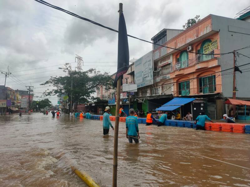 "Temen-temen petugas semuanya lagi berusaha sejak pagi ini mengevakuasi masyarakat yang perlu bantuan. Karena airnya naik cukup tinggi. Kiriman dari wilayah Tangsel dan kabupaten yang melintas masuk ke kota Tangerang," imbuhnya.