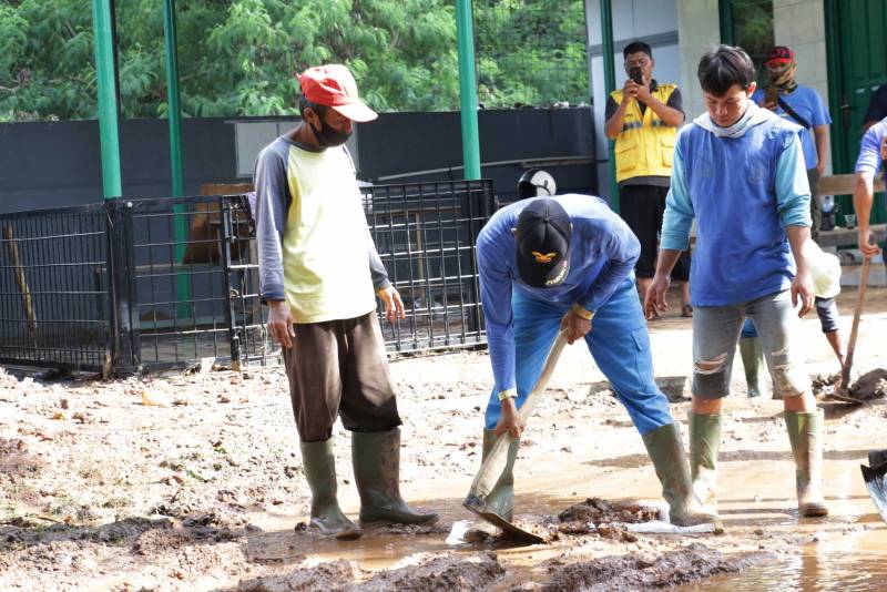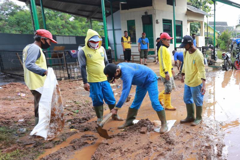 "Alhamdulillah sudah mulai surut, warga dibantu petugas kini mulai melakukan bersih-bersih rumah dan lingkungan sekitar serta pengangkutan sampah yang terbawa banjir," imbuh Sachrudin.