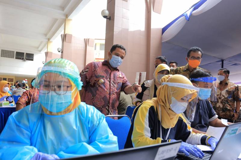 Wali Kota Tangerang H. Arief R. Wismansyah memantau langsung proses vaksinasi yang diikuti oleh Aparatur Sipil Negara (ASN) Pemkot Tangerang yang berlangsung di Pusat Pemerintahan Kota Tangerang, Kamis (25/2).