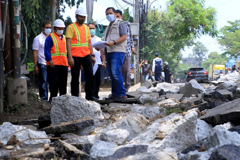 "Inventarisir dulu kondisi - kondisi jalannya, jadi penanganannya bisa tepat," pesan Arief kepada petugas kontruksi yang di lokasi perbaikan jalan.