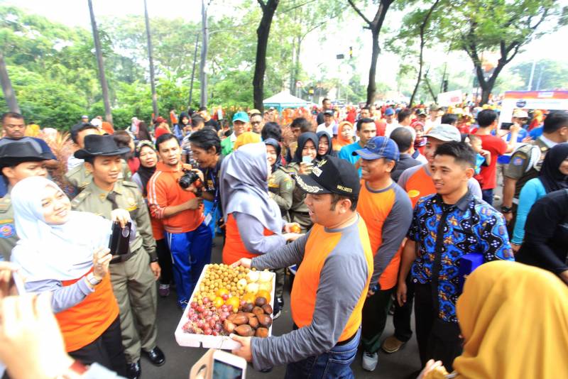 Setelah itu, Wali Kota dan rombongan juga menyempatkan diri untuk meninjau berbagai stand yang menyediakan layanan kesehatan gratis dan juga buah-buahan yang bisa diambil secara cuma-cuma oleh masyarakat.