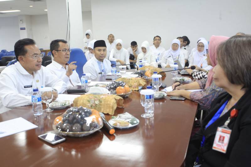 Diskusi, saling tanya, jawab serta berikan masukan satu sama lain terkait pelayanan rumah sakit dalam rangka survei akreditasi versi 2012 antara Sekretaris Daerah, Dadi Budaeri, Direktur Rumah Sakit Umum Daerah (RSUD) Kota Tangerang Feriansyah, Dewan Pengawas RSUD dengan tim surveior tim Komite Akreditasi Rumah Sakit (KARS) berlangsung serius namun sesekali disuguhi candaan dari sekda, sehingga suasana pun menjadi lebih santai dan tidak menegangkan.