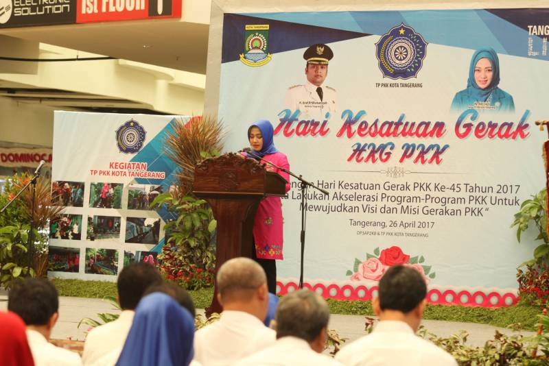 Puncak acara Peringatan Hari Kesatuan Gerak Pembinaan Kesejahteraan Keluarga (PKK) Ke-45 tahun 2017, digelar Rabu (26/04) di Mall Bale Kota Tangerang.