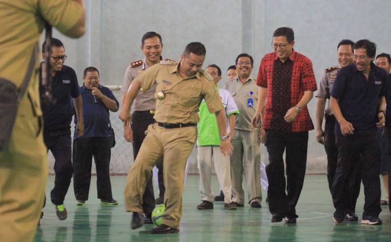 Dalam kesempatan tersebut, Wali Kota juga berkesempatan untuk melakukan tendangan pertama, tanda dimulainya lomba olahraga antar serikat pekerja.