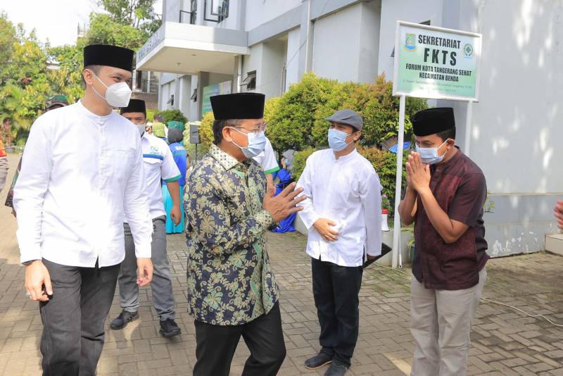 Berlokasi di pelataran Kecamatan Benda, Wakil Wali Kota Tangerang H. Sachrudin didampingi oleh Camat Benda Achmad Suhaely hadir dalam acara penyematan rompi serta pelepasan relawan pada, Minggu (14/3).