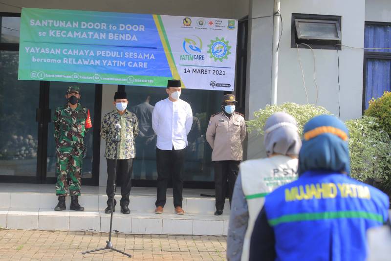 "Karena pandemi Covid-19 belum usai, maka kami menyalurkan bantuan secara door to door pada 840 anak yatim yang dibantu oleh para relawan PSM dan PMI Kecamatan Benda,".