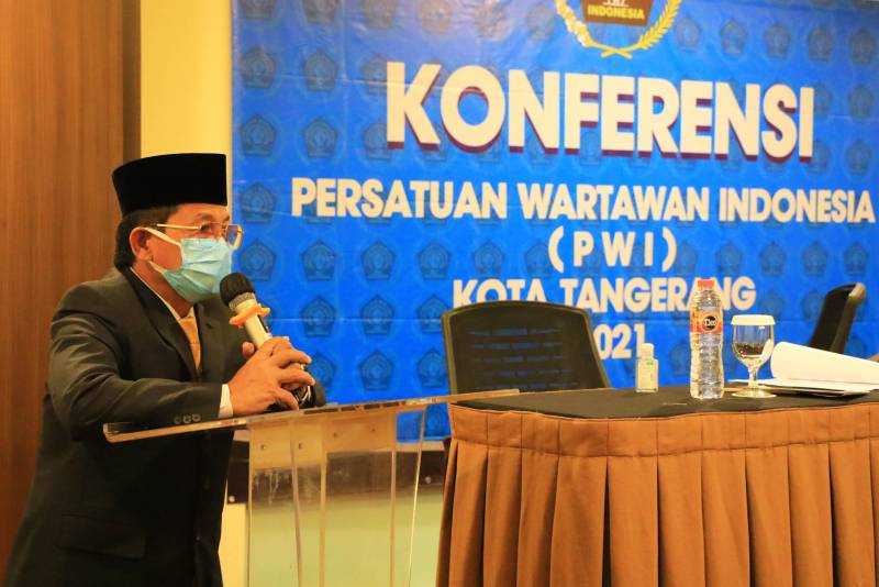 Wakil Wali Kota Tangerang H. Sachrudin hadir didampingi Kepala Dinas Komunikasi dan Informasi Kota Tangerang Mulyani mengatakan apresiasi kepada pihak penyelenggara yang sudah menggelar kegiatan Konfrensi PWI dengan menerapkan Protokol Kesehatan.