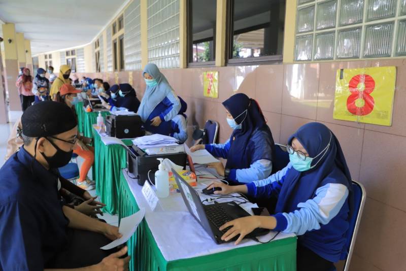 Dihari pertama puasa, di bulan ramadan 1442 hijriah, Pemerintah Kota Tangerang melalui Dinas Kesehatan menggelar vaksinasi dosis kedua kategori petugas pelayanan publik yaitu kepada 5000 guru, yang berlangsung selama dua hari, di Plaza Puspem Kota Tangerang, Selasa, 13 April 2021.