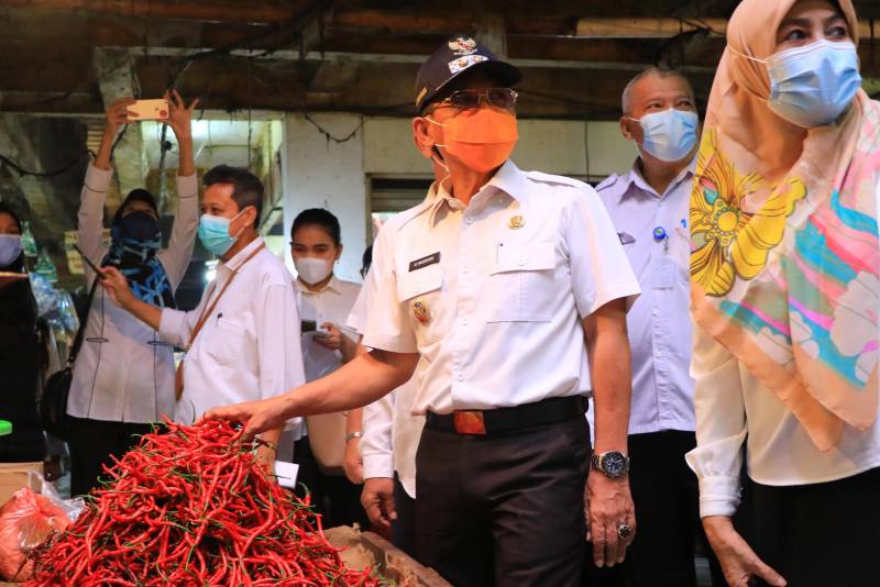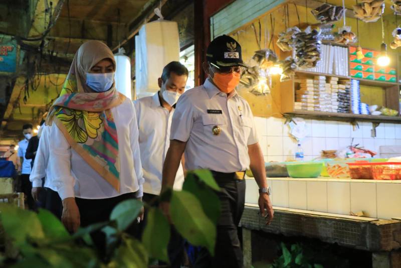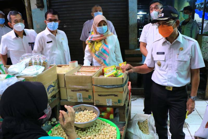Wakil Wali Kota Tangerang H. Sachrudin didampingi Kepala Dinas Ketahanan Pangan Abduh Surahman serta Dirut PD. Pasar Titien Mulyati dan juga Kepala Bulog Panji Lumadyantoro meninjau langsung Pasar Anyar guna memonitor harga komiditas harian jelang Hari Raya Idul Fitri 1442 Hijriyah.