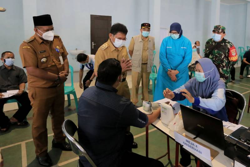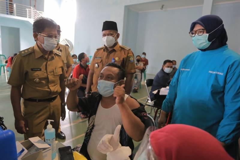 Wakil Wali Kota H. Sachrudin sambangi kegiatan vaksinasi bagi ketua RT dan RW di Kota Tangerang untuk memastikan vaksinasi berjalan dengan lancar yang dilaksanakan di Gor Sudimara Pinang, Selasa (30/3/21).