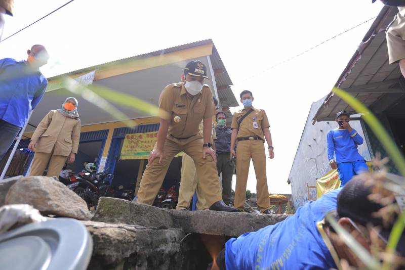 Wali Kota Tangerang H. Arief R. Wismansyah didampingi Kepala Dinas Pekerjaan Umum dan Penataan Ruang (DPUPR) Kota Tangerang Decky Priambodo serta Camat Pinang Kaonang meninjau langsung Situ Cipondoh dan sejumlah saluran di titik lokasi yang terjadi genangan air.