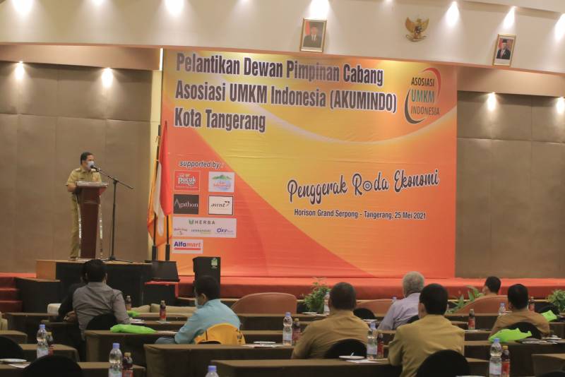 Asosiasi Usaha Mikro Kecil Menengah (UMKM) Indonesia (Akumindo) gelar pelantikan Dewan Pimpinan Cabang (DPC) Akumindo Kota Tangerang yang dilaksanakan di Horizon Grand Serpong Hotel, Kecamatan Pinang, Selasa (25/5/21).