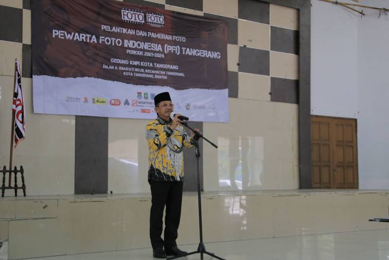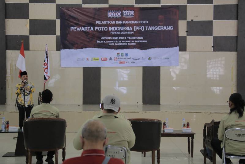 Wakil Wali Kota Tangerang H. Sachrudin menghadiri pelantikan anggota Pewarta Foto Indonesia Tangerang yang dilaksanakan di Gedung KNPI Kota Tangerang, Sabtu (29/5/21). Acara tersebut melantik 13 orang kepengurusan periode 2021-2024 organisasi Perwarta Foto Indonesia (PFI) Tangerang yang secara resmi dibentuk pada bulan Januari 2021.