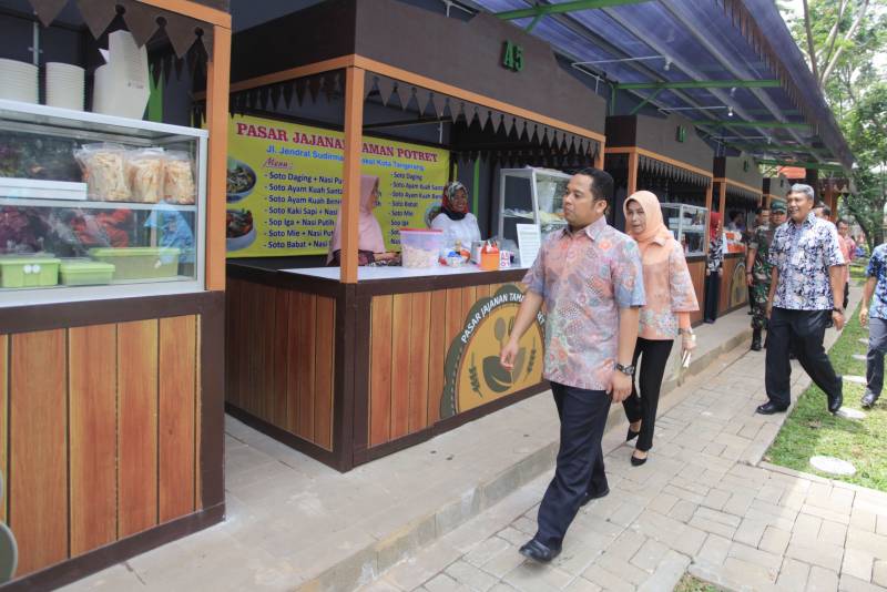 "Jadi taman taman yang ada tidak hanya jadi ruang publik dan rekreasi, tapi juga bisa jadi tempat menikmati kuliner yang ada di Kota Tangerang" ucap Arief ketika meresmikan Pasar Jajanan Taman Potret,Kamis (30/3).