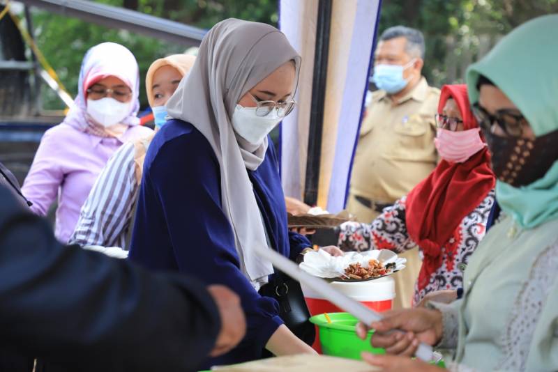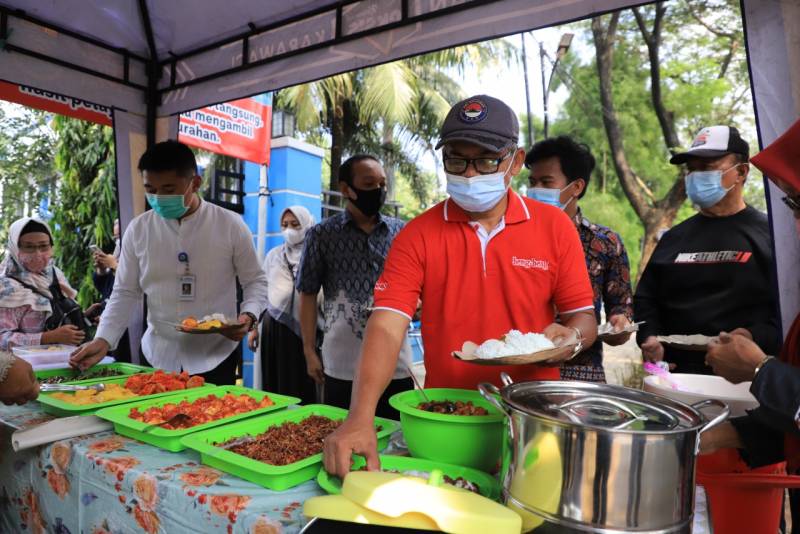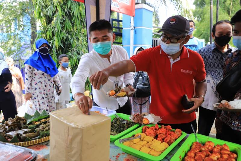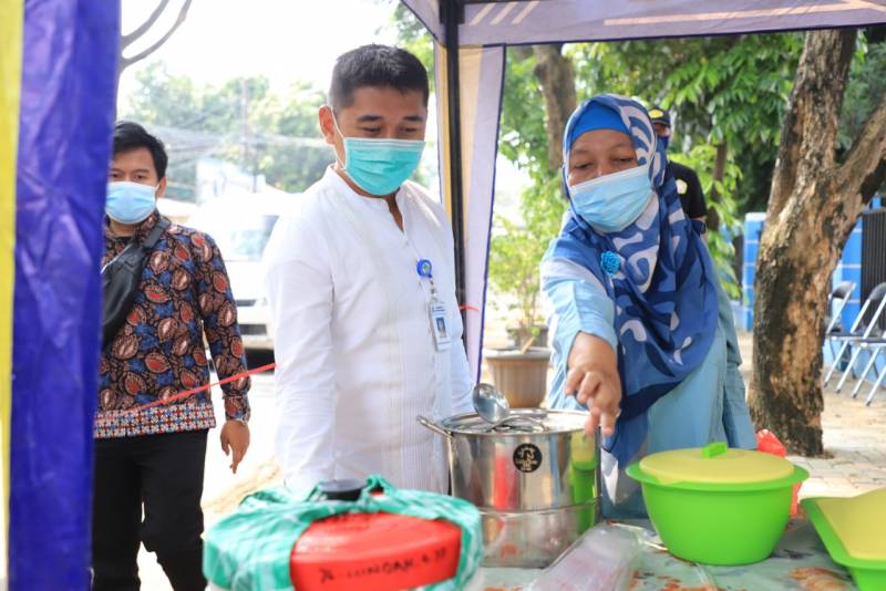 Hari Jumat, hari penuh keberkahan. Puluhan UMKM Kelurahan Nusa Jaya, Kecamatan Karawaci, Kota Tangerang menggelar Kedai Jumat Berkah dengan semangat ‘Makan Sepuasnya Bayar Seikhlasnya’, di depan kantor kelurahan, Jumat (11/6/21).