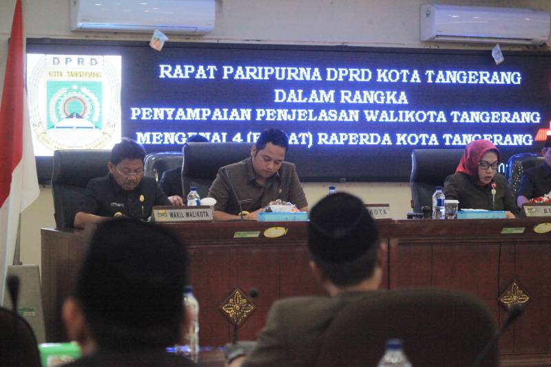 Pemerintah Kota (Pemkot) Tangerang mengajukan empat Rancangan Peraturan Daerah (Raperda). Yaitu Raperda tentang perubahan atas Peraturan Daerah (Perda) Nomor 10 tahun 2014 tentang Rencana Pembangunan Jangka Menengah Daerah (RPJMD) Kota Tangerang tahun 2014-2018, Raperda tentang Perubahan atas Perda Nomor 6 tahun 2012 tentang Rencana Tata Ruang Wilayah (RTRW) Kota Tangerang tahun 2012-2032, Raperda tentang perubahan kedua Perda Nomor 7 Tahun 2010 tentang Pajak Daerah dan Raperda tentang Penyertaan Modal Pemerintah.