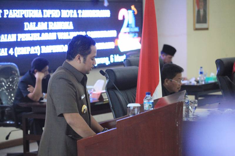 “Pengajuan Raperda tersebut, tak lain untuk memohon perkenan Dewan Perwakilan Rakyat Daerah (DPRD) agar dapat dilakukan pembahasan secara bersama-sama dan selanjutnya dapat disetujui bersama untuk ditetapkan menjadi Perda,” tutur Wali Kota Tangerang, Arief Rachadiono Wismansyah, pada Rapat Paripurna DPRD Kota Tangerang dalam rangka Penyampaian Penjelasan Wali Kota tentang empat Raperda Kota Tangerang, di Ruang Paripurna DPRD Kota Tangerang, Senin (06/03).