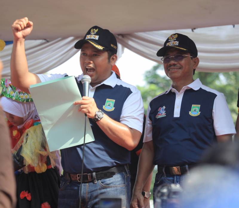 Wali Kota bersama para peserta HPSN 2017 juga membacakan deklarasi Kota Tangerang Bebas Sampah 2020. Secara kompak Wali Kota bersama peserta membacakan deklarasi yang intinya berisi komitmen untuk lebih peduli terhadap kelestarian dan kebersihan lingkungan.