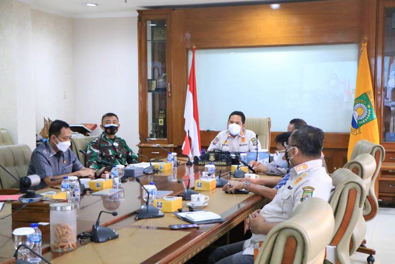 Minggu (4/7/21) sore, Pemerintah Kota Tangerang menggelar rapat koordinasi bersama Forkopimda, para Kepala OPD serta Camat dan Lurah se -Kota Tangerang secara daring dan luring terkait pelaksanaan PPKM Darurat yang berlangsung di Gedung Pusat Pemerintahan Kota Tangerang.