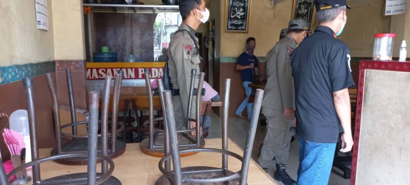 “Hari ini, kami membagi empat tim untuk melakukan penyemprotan disinfektan mulai dari jalan TMP Taruna, sampai ke Palem Semi, Cibodas. Selain itu, kami juga mendapati 10 rumah makan masih menerima makan di tempat dan kami tindak langsung dengan memasang garis pembatas dan stiker untuk tutup sementara di rumah makan tersebut, hingga yang bersangkutan membuat surat pernyataan, nanti akan dibuka kembali,” ungkapnya.