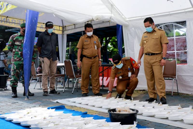 Dalam tinjauannya, Wali Kota menyampaikan bahwa di tengah pandemi Covid-19 yang masih melanda masyarakat banyak yang membuat dapur umum di tingkat RT dan RW untuk membantu warga yang sedang melakukan isolasi mandiri.
