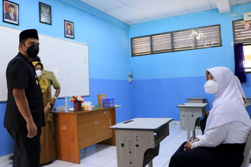 Wali Kota Tangerang H. Arief R. Wismansyah meninjau jalannya vaksinasi yang diperuntukan bagi pelajar dengan usia 12 hingga 17 tahun di Kota Tangerang.