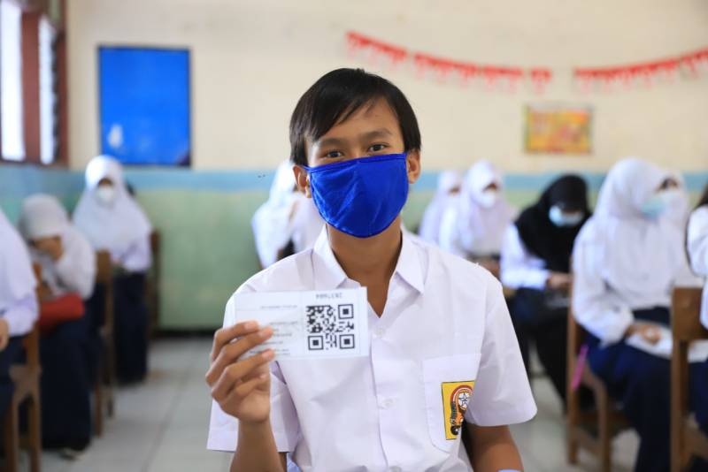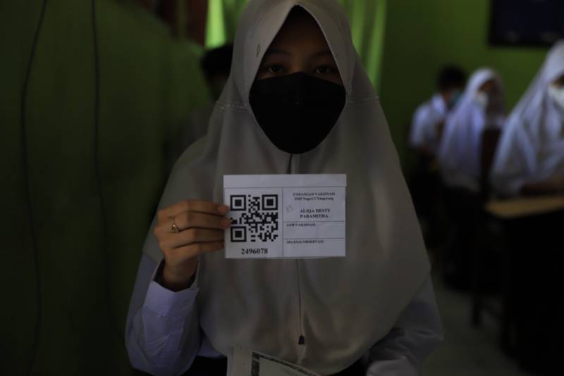 “Hari ini, kami lakukan percobaan tahap kedua terkait penyempurnaan website untuk vaksinasi, di SMPN 2 Kota Tangerang. Jadi, perbedaan dengan sebelumnya adalah kami sudah mengirimkan barcode ke sekolah, yang berisi data siswa, kemudian siswa hanya tinggal datang ke sekolah dan mengambil barcode, melakukan screening, mendapatkan vaksin dan observasi,” jelasnya.