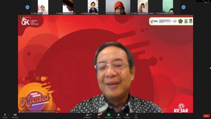 Wali Kota Tangerang H. Arief R. Wismansyah hadir dalam kegiatan Kreasi Anak Indonesia (KREASI) dengan Satu Rekening Satu Pelajar (KEJAR), Wujudkan Impian Anak Indonesia. Yang digelar secara virtual oleh Otoritas Jasa Keuangan (OJK) Regional 1 DKI Jakarta dan Banten, Selasa (24/8/21).